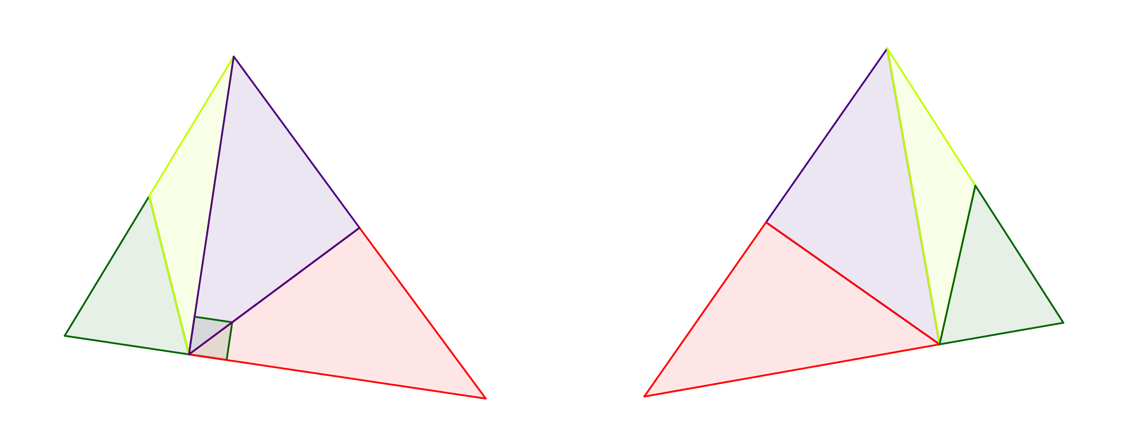 Le théorème de Bolyai affirme qu'il suffit que deux polygones aient même aire pour qu'il existe un jeu de pièces polygonales qui permette d'obtenir par recollement l'un ou l'autre des polygones.