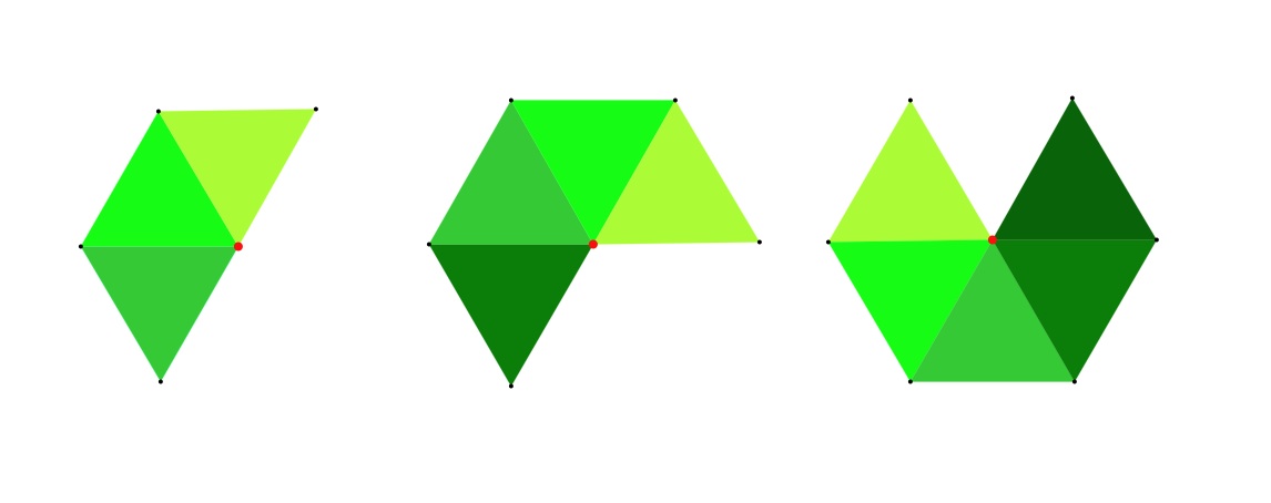 Voici les patrons possibles pour un sommet entouré de triangles :