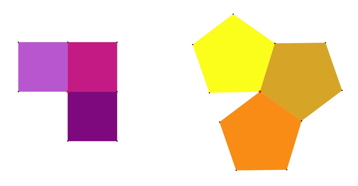 : en chaque sommet aboutissent 5 faces. Ensuite grâce à la règle de la somme des angles, les cas possibles sont vite énumérés.